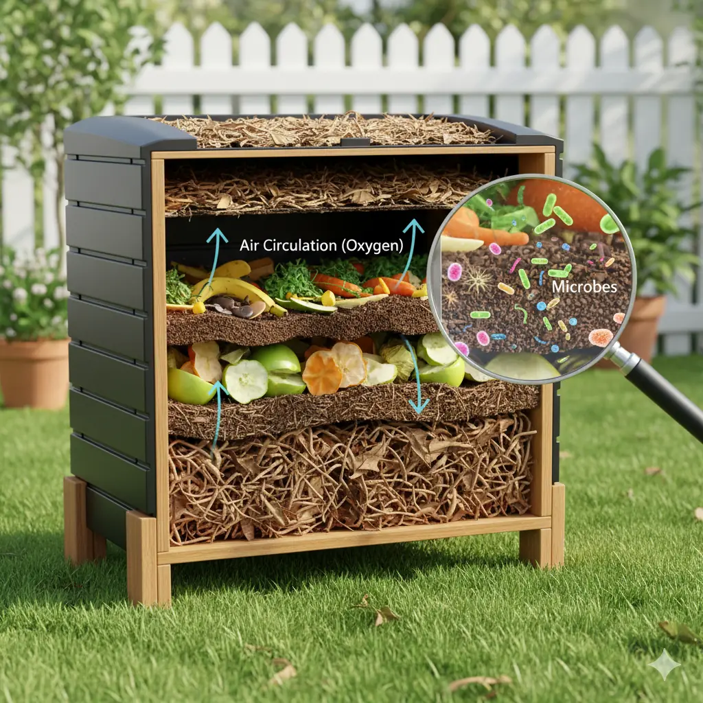 | Reduces household waste sent to landfills significantly. | Requires monitoring the carbon-to-nitrogen balance. |